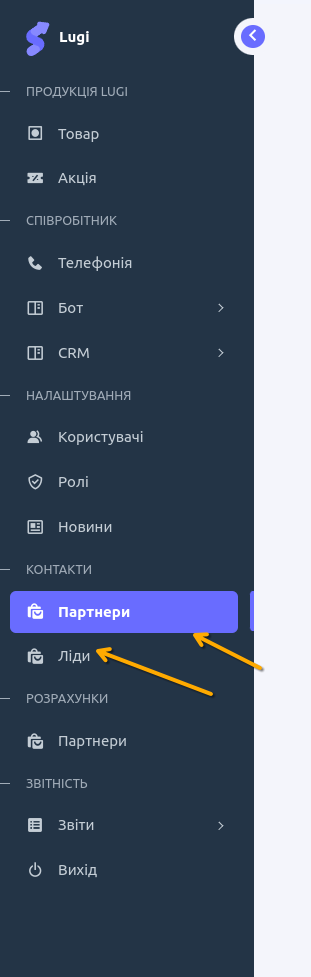 Если в поле такой символ то означает переход к карточке (Лида или Партнёра)