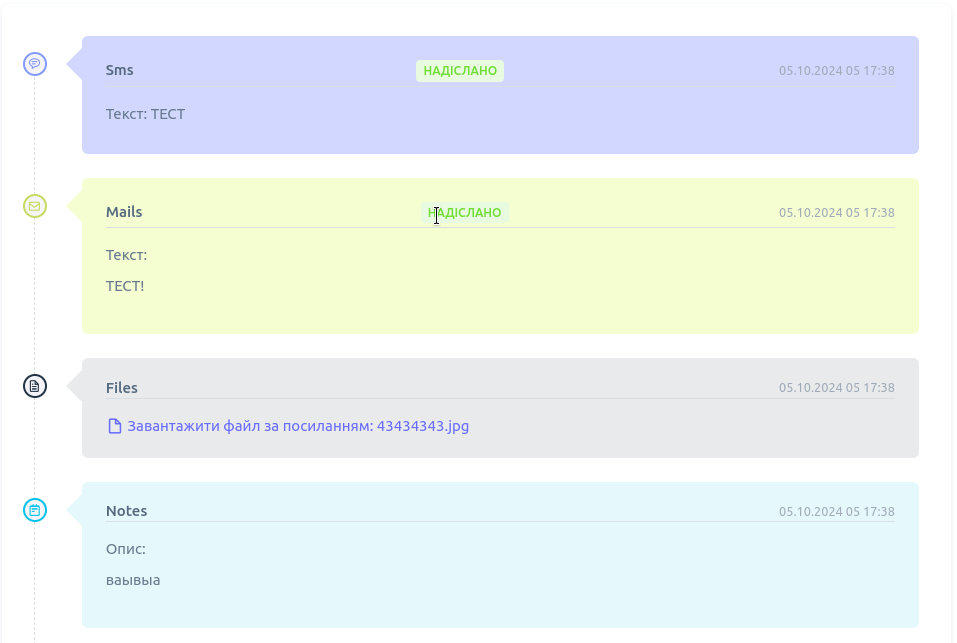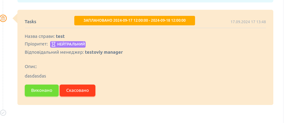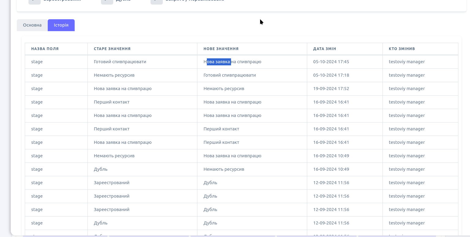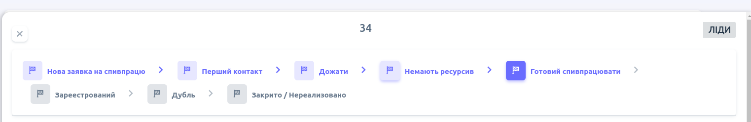 Так же со статусоми Запланировано, Выполнено, ОтмененоТакже в каждой карточке лида есть "Имтория"