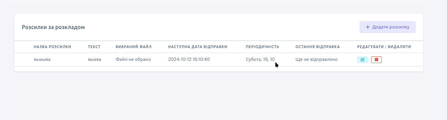 Название, оформление текстов, прикрепить файл, выбрать под какие Tags, Условия в какой день, в какое время отправлять Или сколько времени пользователь не общаеться с намиРОЛИ и права