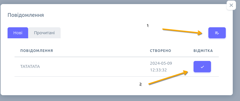 Уведомление можно прочитать всё сразу (1) по одному (2)ПОЛЯ