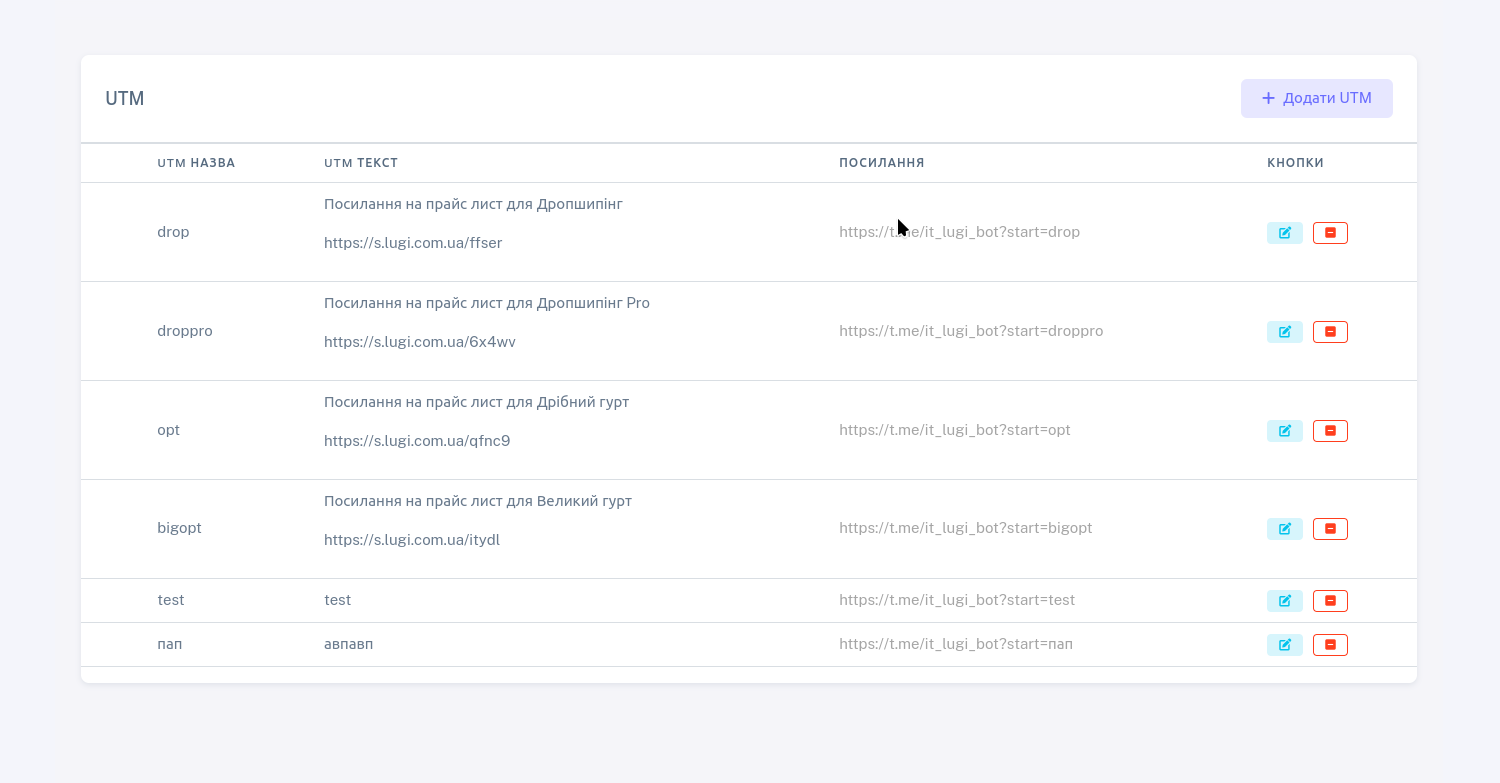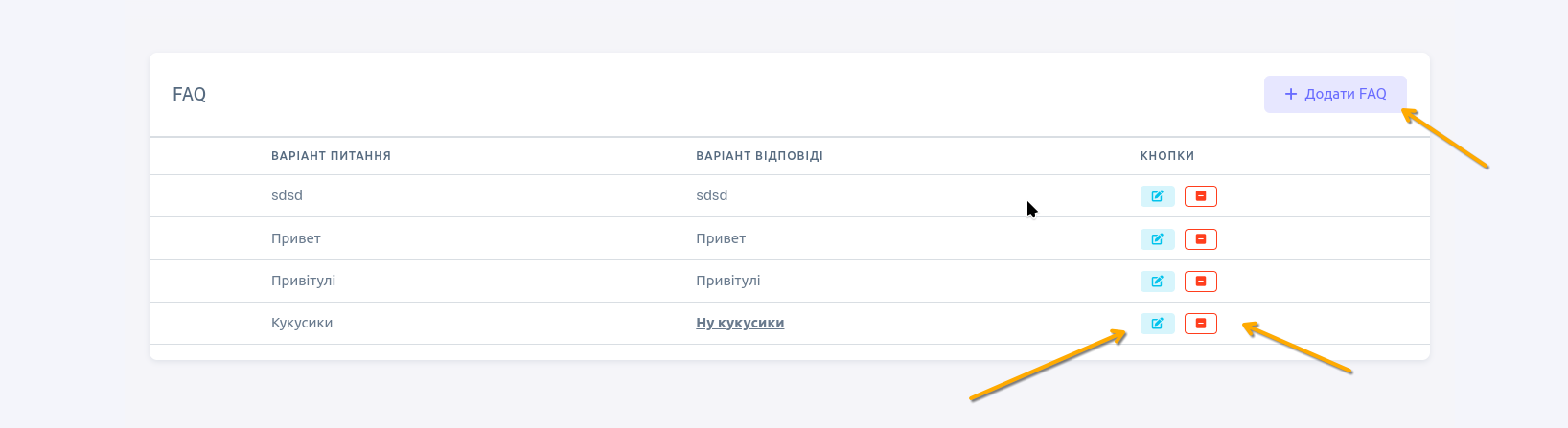 Можно добавлять, редактировать, удалять вопросы/ответыUTM