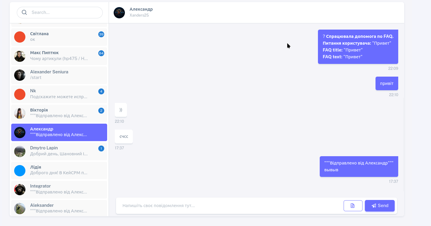 Если партнёр напишет вопрос который будет у нас уже в базе вопросов ответов то система ответит самостоятельно на поставленый вопрос