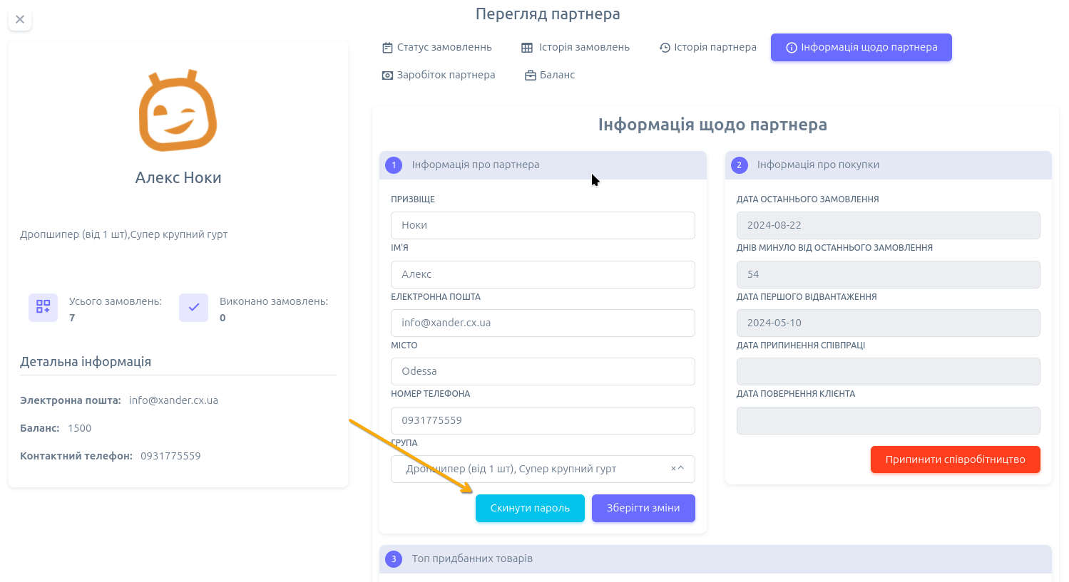 Блок топ 5 товаров который покупал партнёр - 4 Додаткова інфа