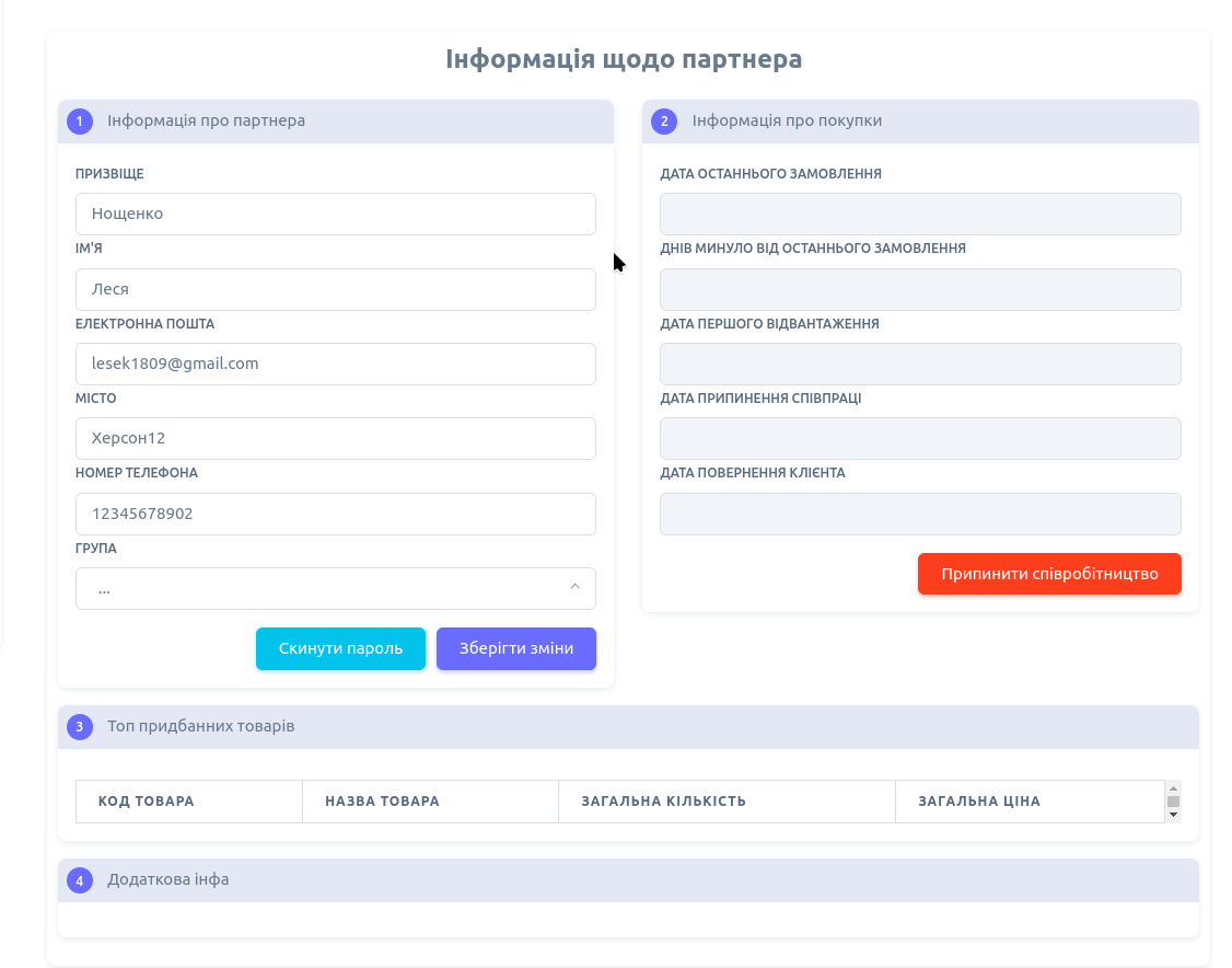 Тут стандартные поля для всех партнёров! - 2 Інформація про покупки