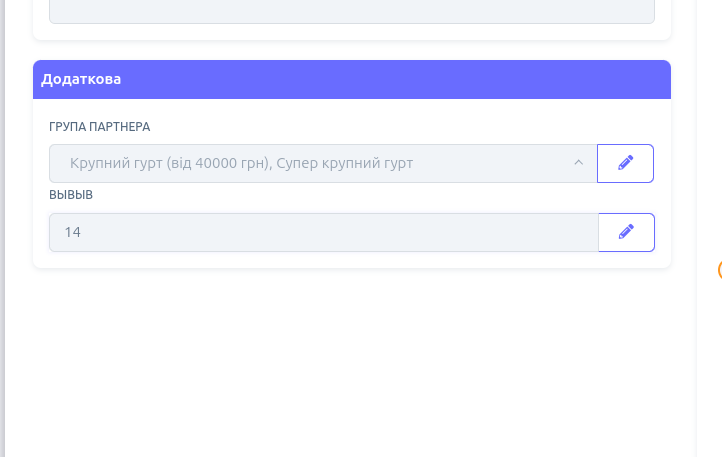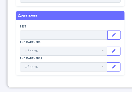 - "Додаткова" Дополнительные поля. Поля можно создать любые с типоми полей