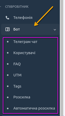 Предусмотрено что к боту можно сделать доступ к каждому пункту отдельно. То есть Менеджерам только Телеграм чат